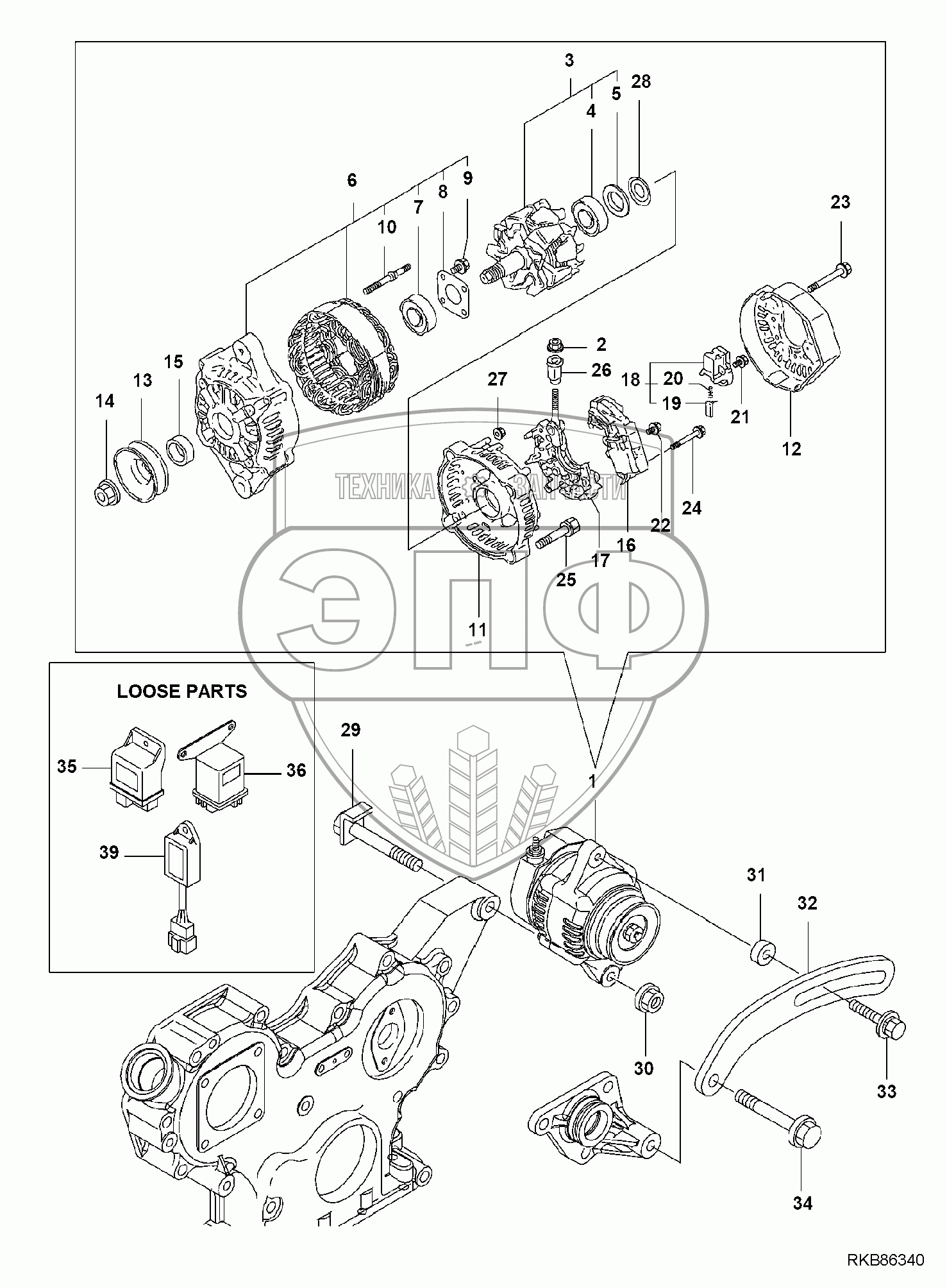 Каталог запасных частей к технике: Komatsu PC55MR-3. ENGINE, ALTERNATOR