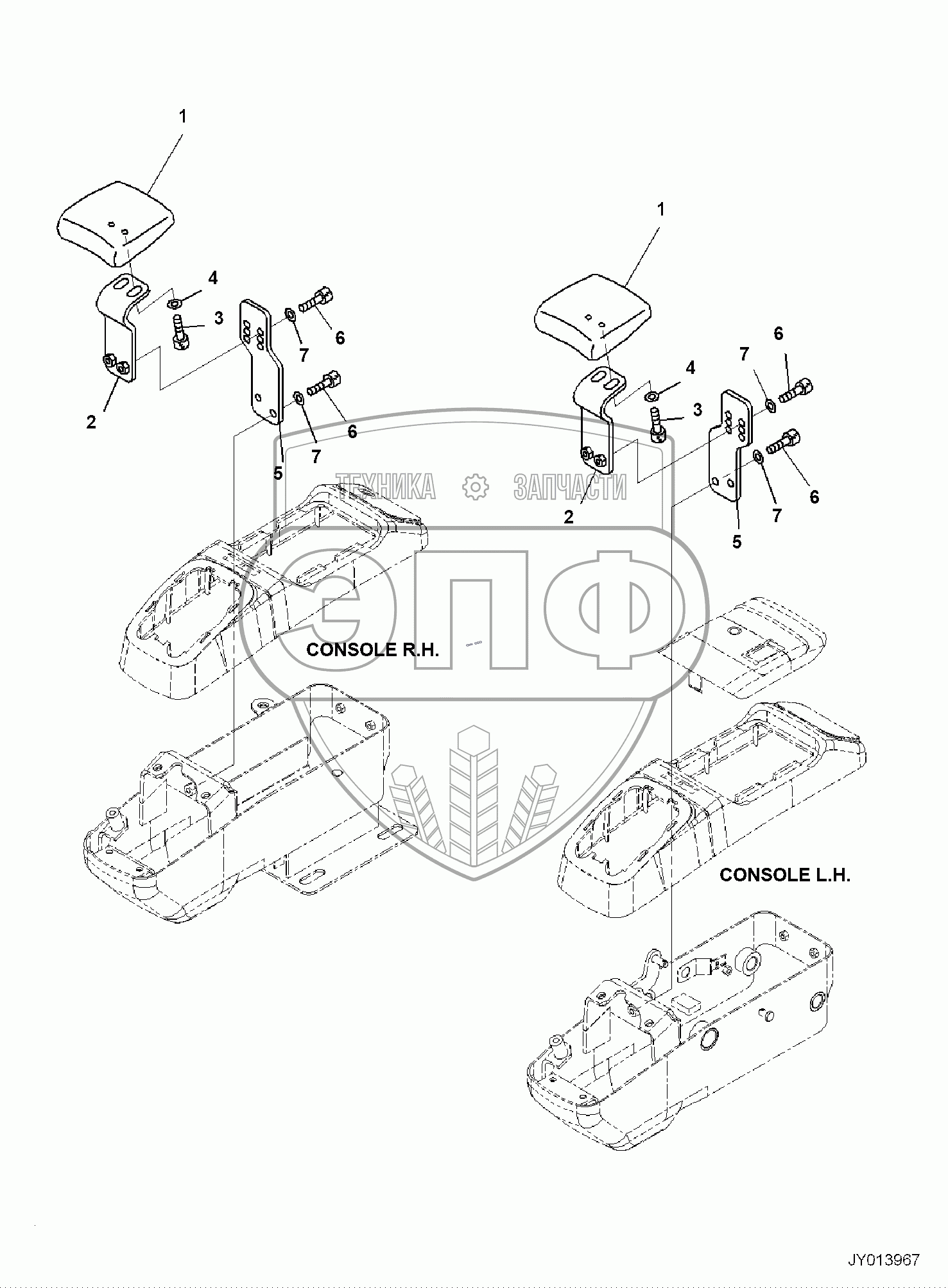 Каталог запасных частей к технике: Komatsu PC55MR-3. FLOOR FRAME, WRIST REST