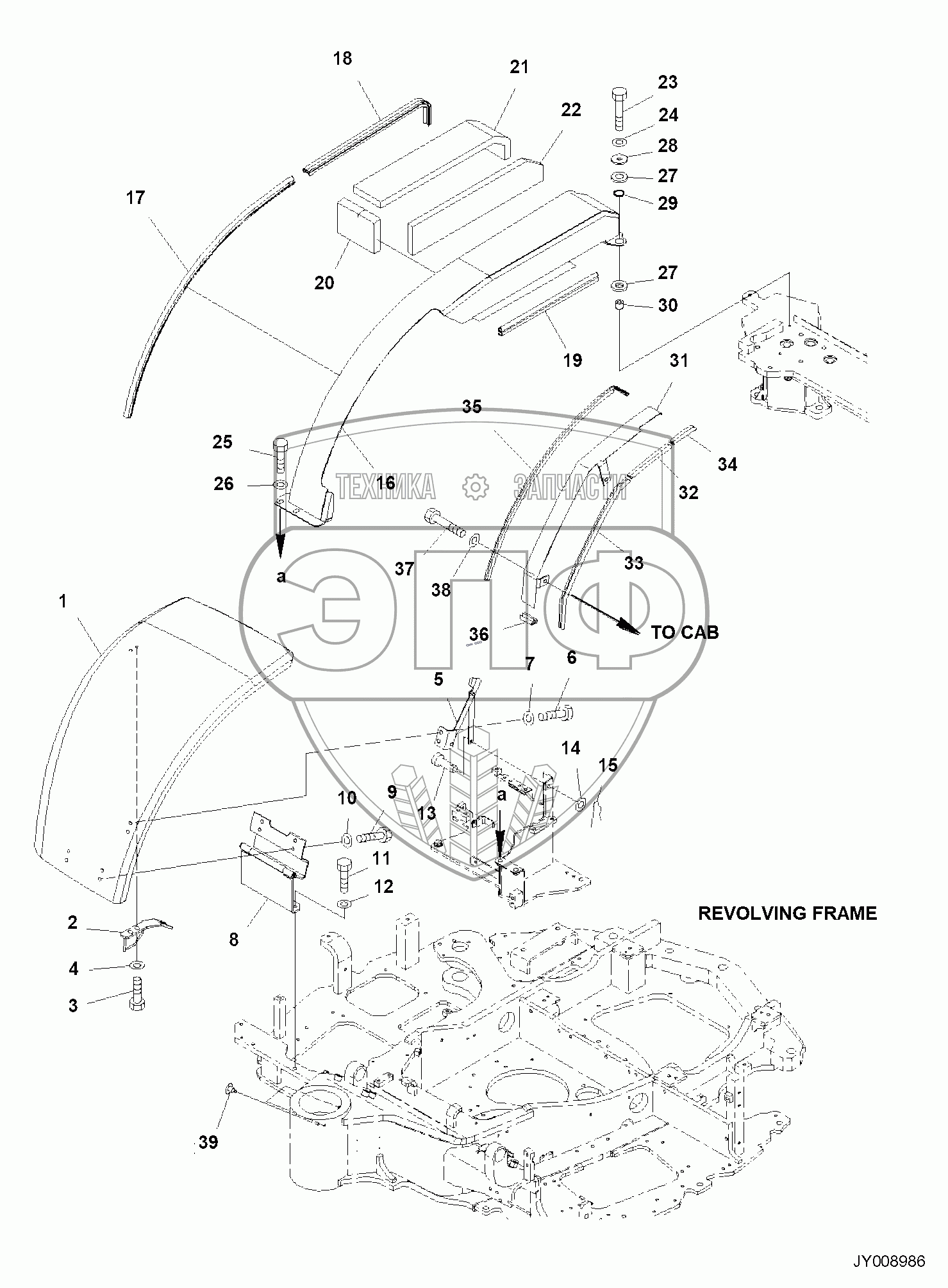 Каталог запасных частей к технике: Komatsu PC55MR-3. FRONT COVER, FOR CAB