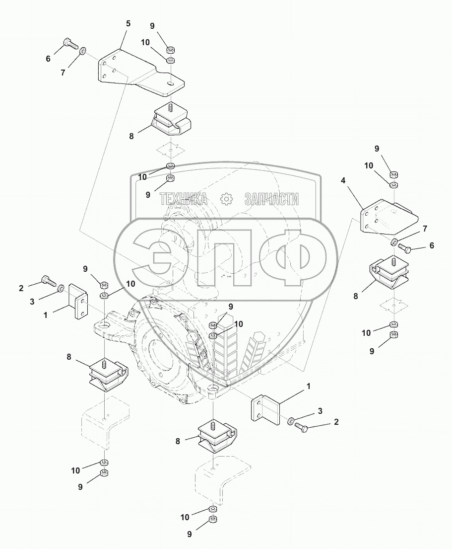Каталог запасных частей к технике: Komatsu Погрузчик SK820. B0100-001001 ENGINE MOUNTS, BRACKET