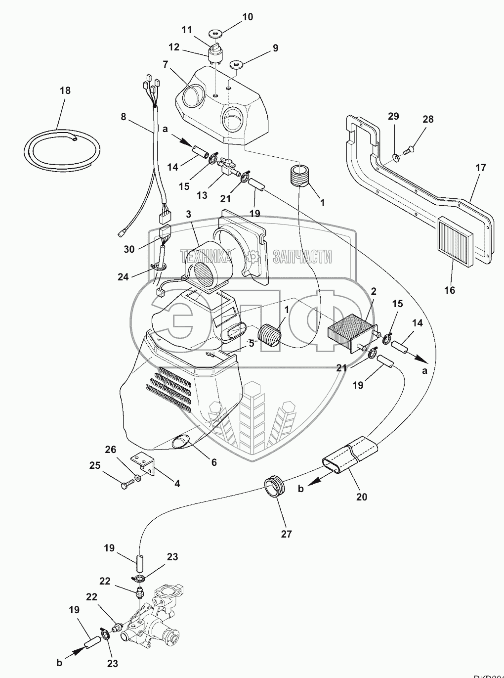 Каталог запасных частей к технике: Komatsu Погрузчик SK820. K0700-001001 HEATING SYSTEM