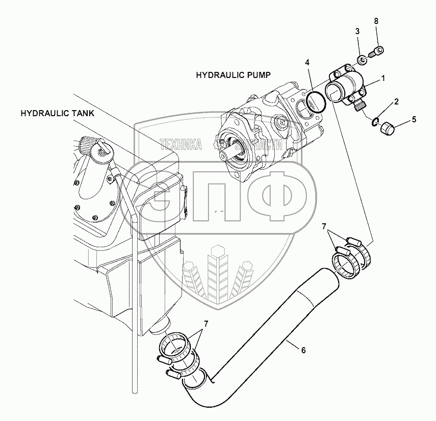 Каталог запасных частей к технике: Komatsu WB93R-5E0. HYDRAULIC PIPING (SUCTION LINE)