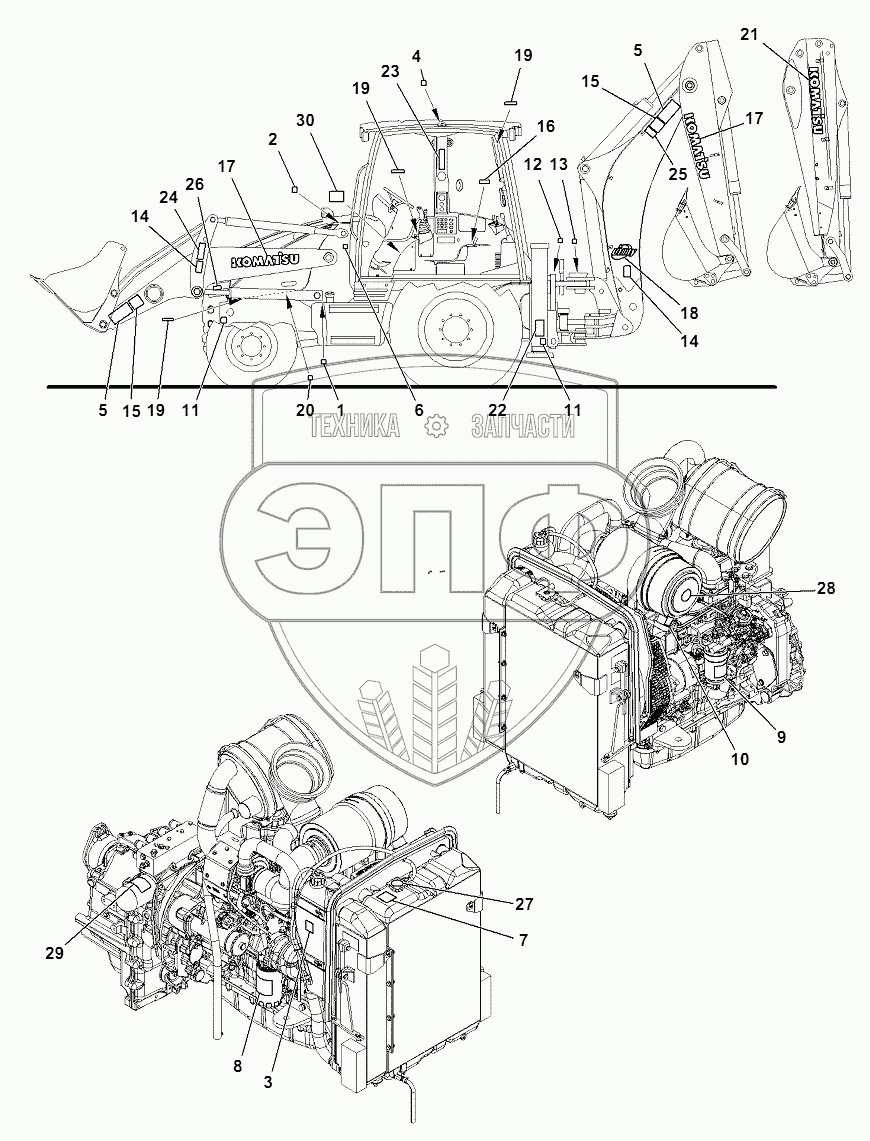 Каталог запасных частей к технике: Komatsu WB93R-5E0. MARK PLATE