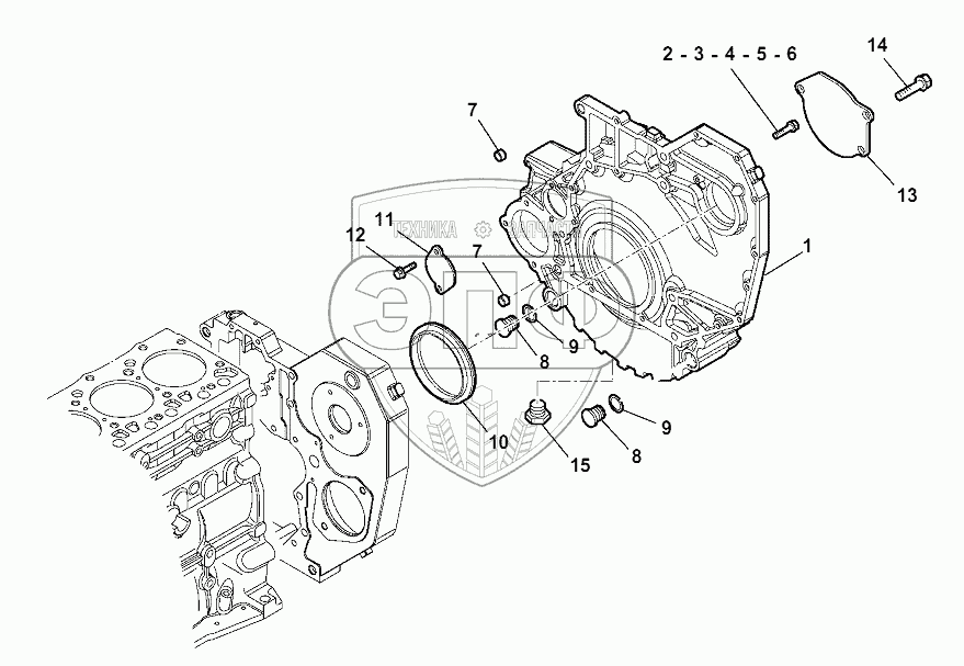 Каталог запасных частей к технике: Komatsu WB93S-5E0. FLYWHEEL HOUSING