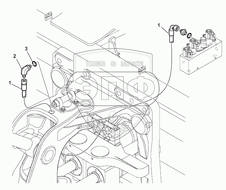 Каталог запасных частей к технике: Komatsu WB93S-5E0. HYDRAULIC PIPING (BOOM LOCKING LINE)