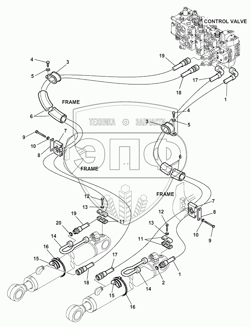 Каталог запасных частей к технике: Komatsu WB93S-5E0. HYDRAULIC PIPING (SHOVEL LIFTING CYLINDER)