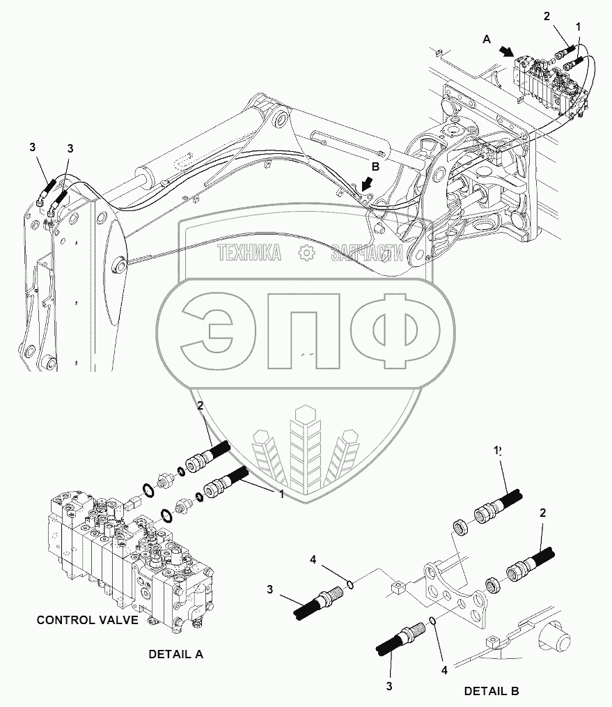 Каталог запасных частей к технике: Komatsu WB93S-5E0. HYDRAULIC PIPING (TELESCOPIC ARM LINE)