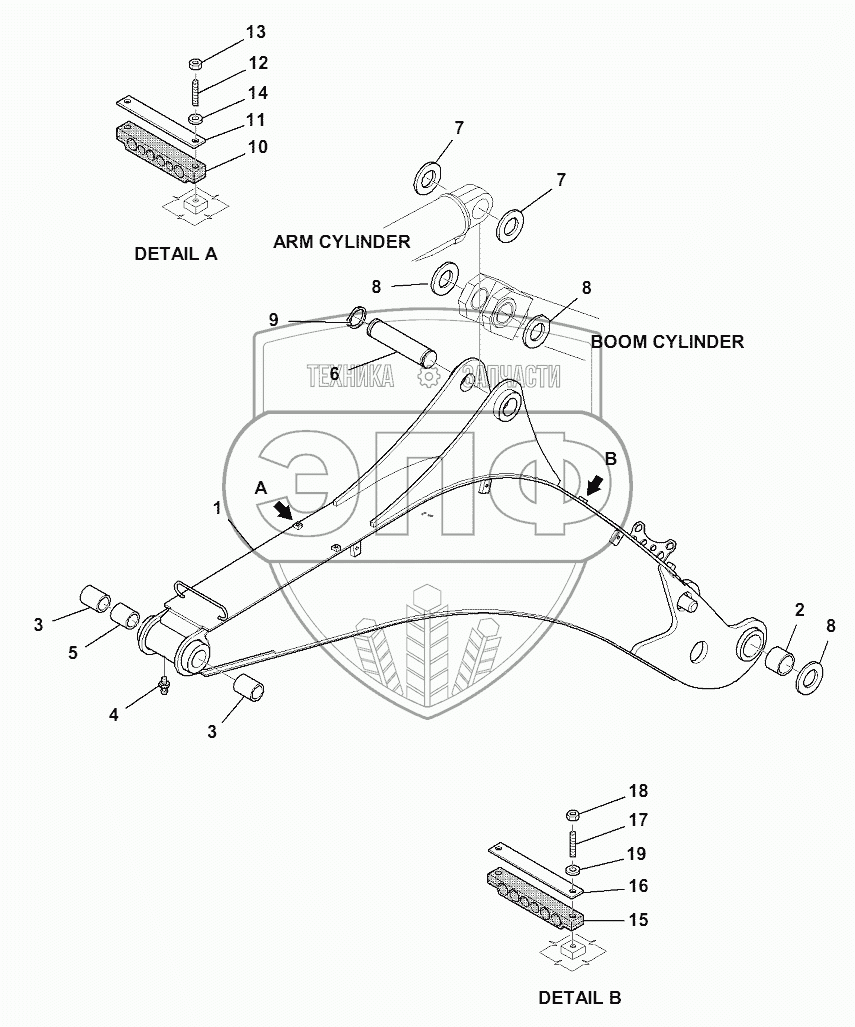 Каталог запасных частей к технике: Komatsu WB97S-5E0. BOOM