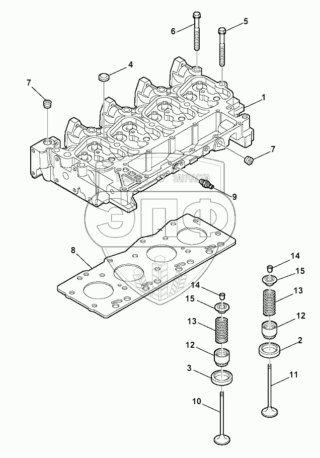 Каталог запасных частей к технике: Komatsu WB97S-5E0. CYLINDER HEAD (1/2)