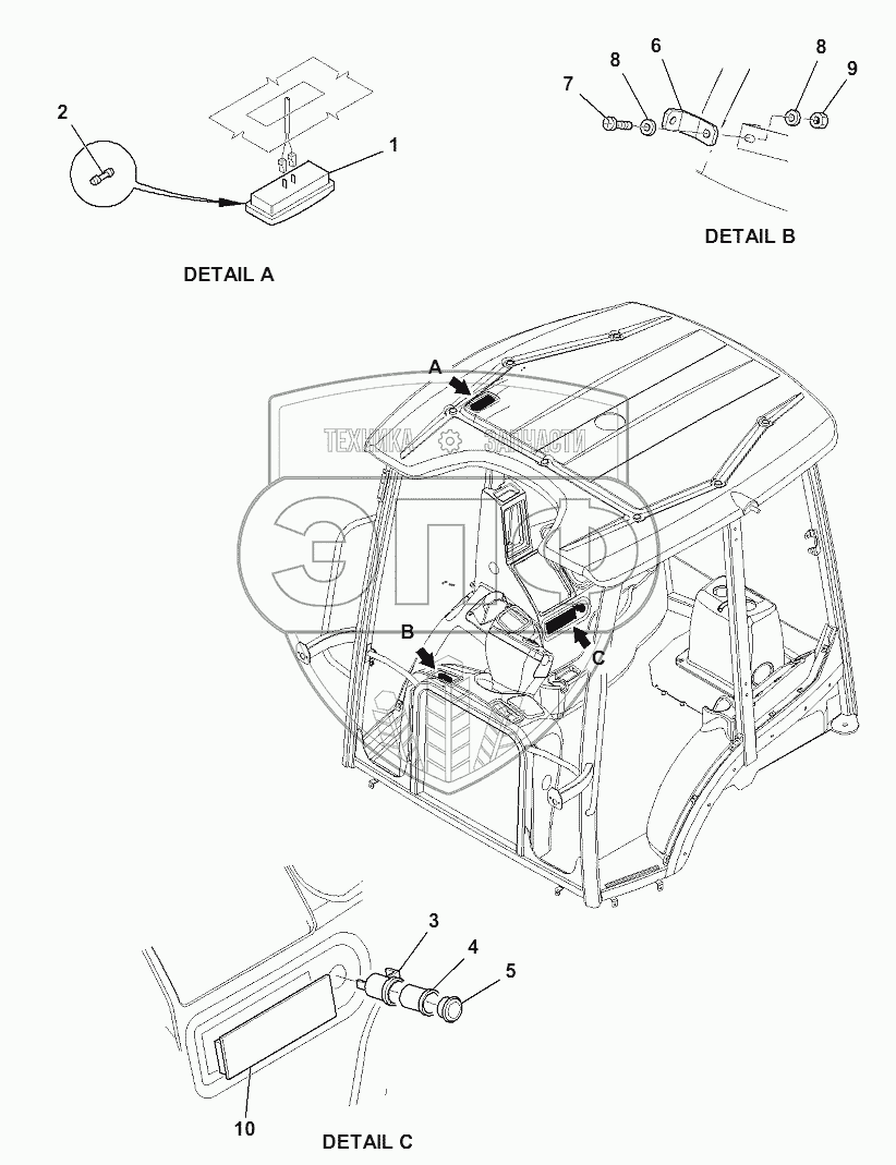 Каталог запасных частей к технике: Komatsu WB97S-5E0. ELECTRICAL SYSTEM (CAB EQUIPMENT)