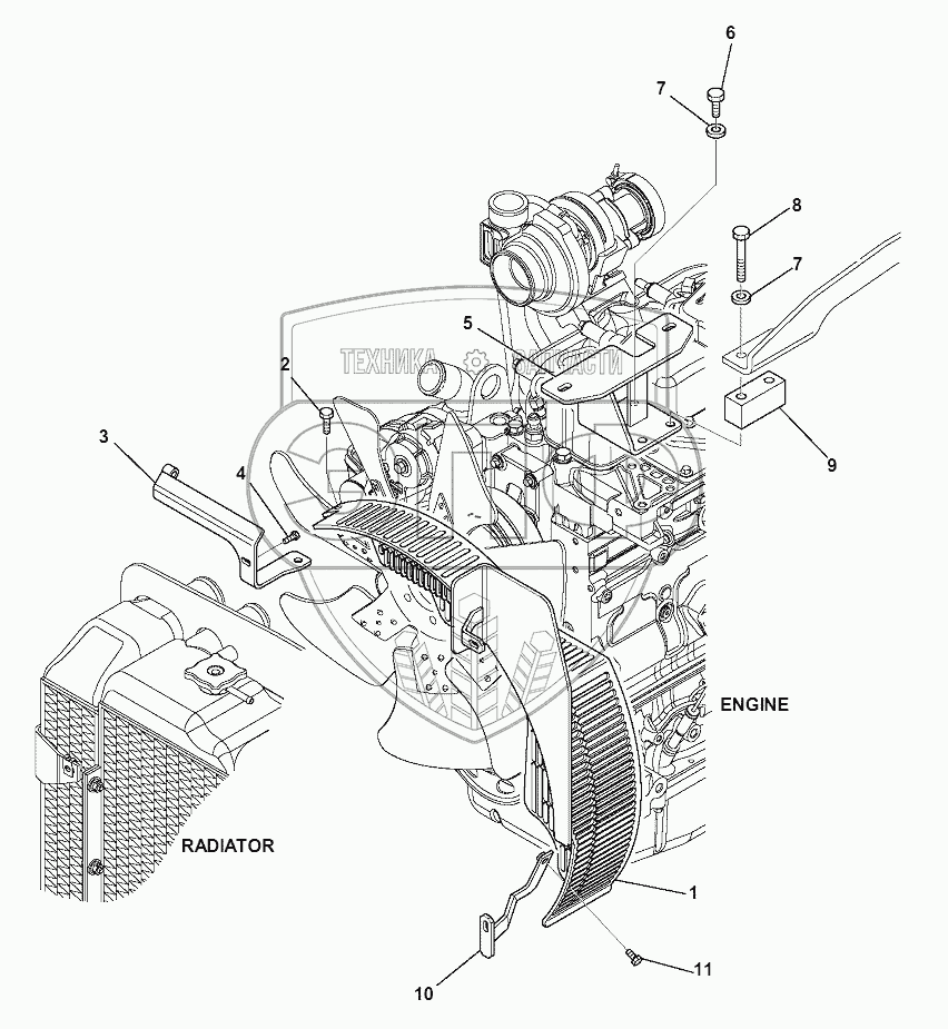 Каталог запасных частей к технике: Komatsu WB97S-5E0. FAN GUARD