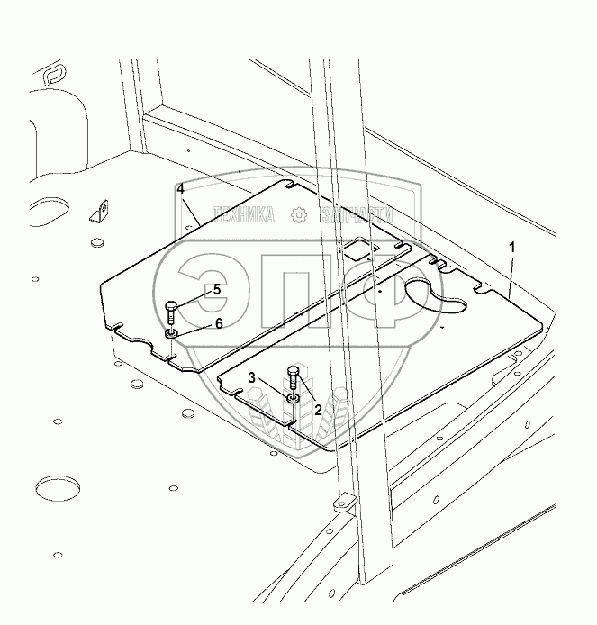 Каталог запасных частей к технике: Komatsu WB97S-5E0. FLOOR BOARD CAB