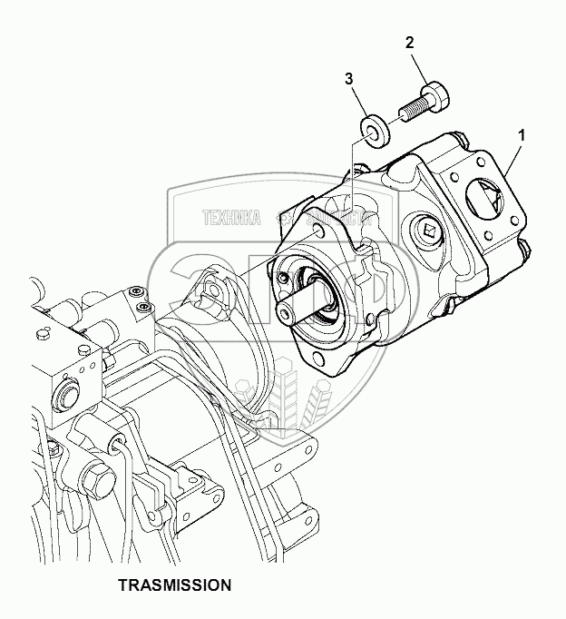 Каталог запасных частей к технике: Komatsu WB97S-5E0. HYDRAULIC PUMP FIXING