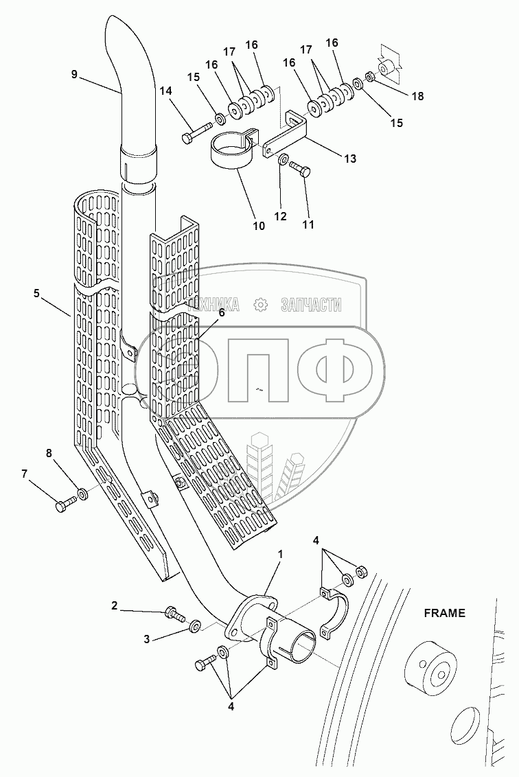 Каталог запасных частей к технике: Komatsu WB97S-5E0. MUFFLER (2/2)