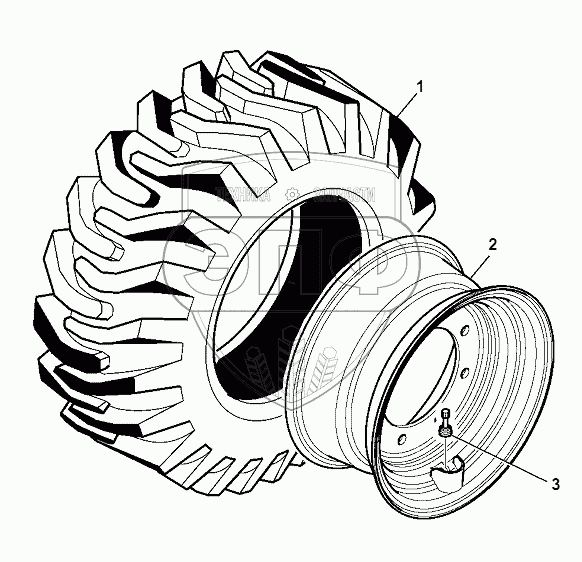 Каталог запасных частей к технике: Komatsu WB97S-5E0. WHEELS (16.9XR28 12PR ISGT)