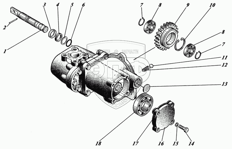 Каталог запасных частей к технике: Коммаш КО-440. Коробка отбора мощности