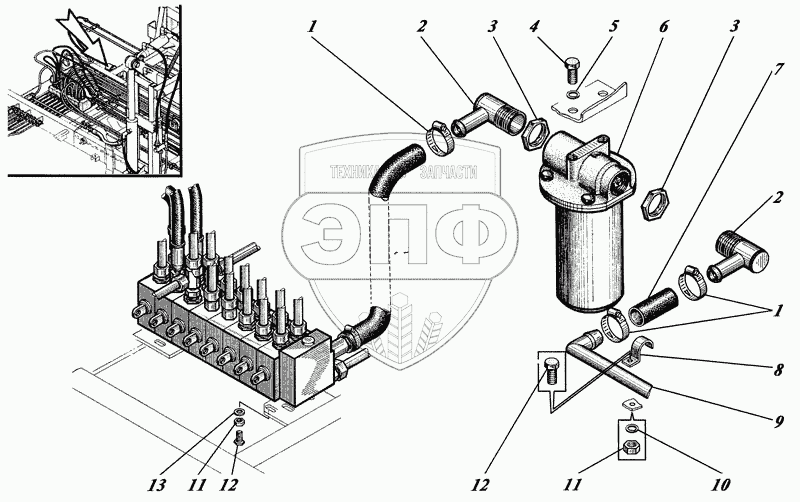 Каталог запасных частей к технике: Коммаш КО-440. Монтаж гидросистемы на надрамнике