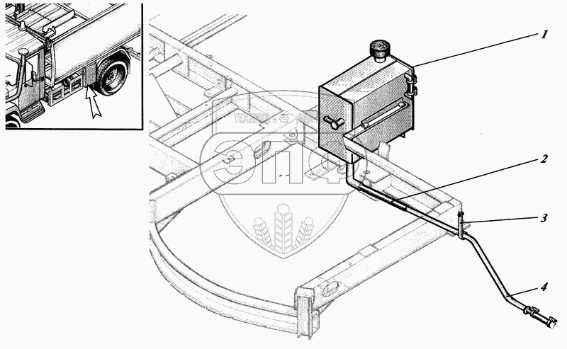 Каталог запасных частей к технике: Коммаш КО-440. Монтаж гидросистемы на шасси