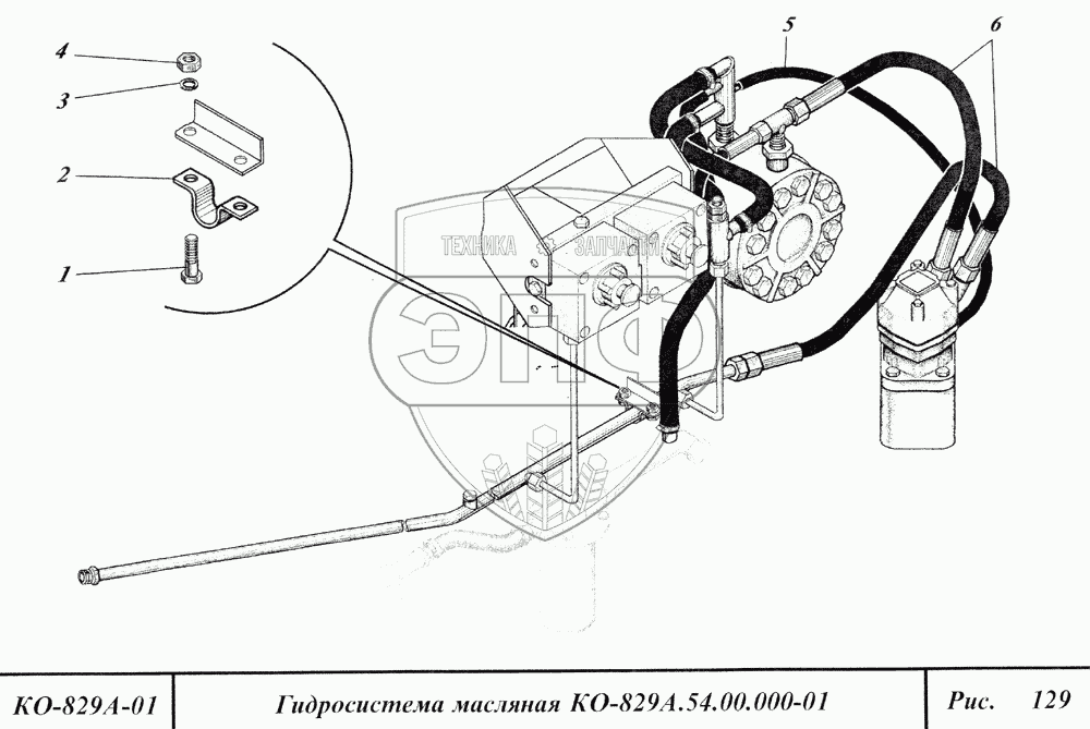 Каталог запасных частей к технике: Коммаш КО-829А. Гидросистема масляная