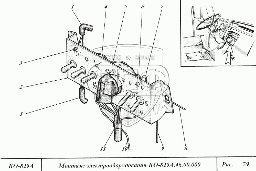 Каталог запасных частей к технике: Коммаш КО-829А. Монтаж электрооборудования