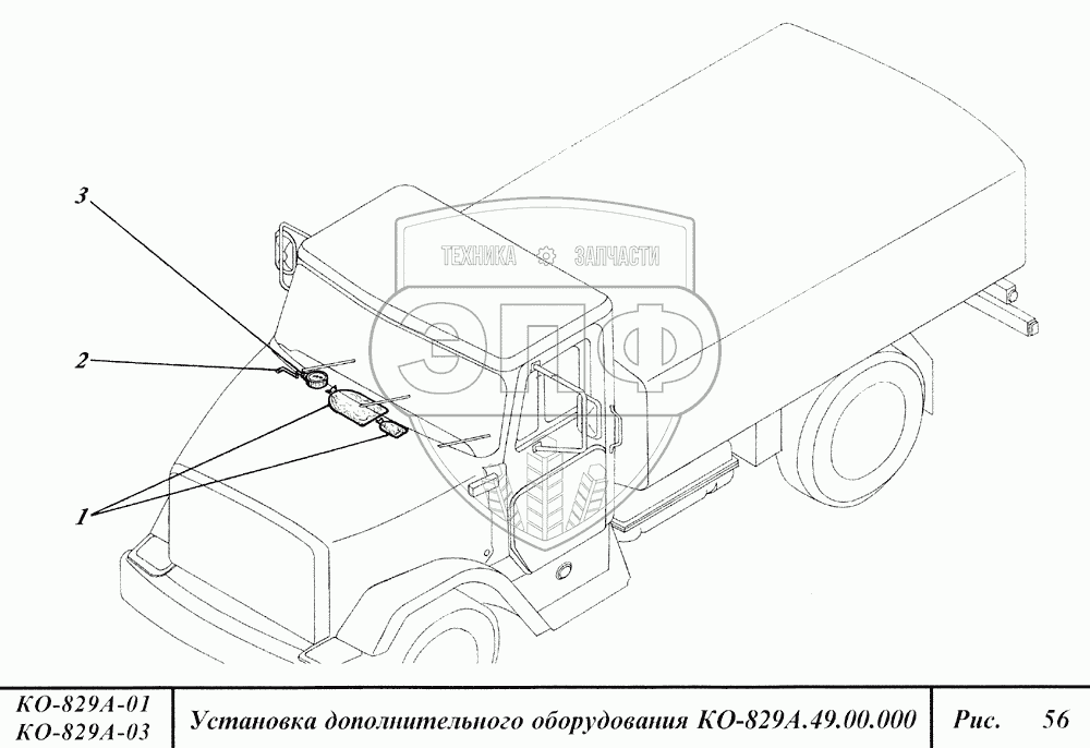 Каталог запасных частей к технике: Коммаш КО-829А. Установка дополнительного оборудования