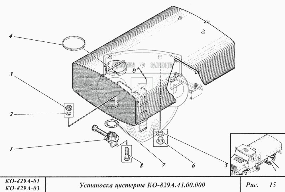 Каталог запасных частей к технике: Коммаш КО-829А. Установка цистерны