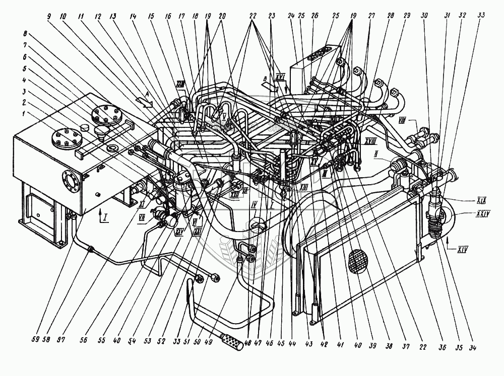 Каталог запасных частей к технике: Ковровец ЭО-4124. Гидросистема экскаватора