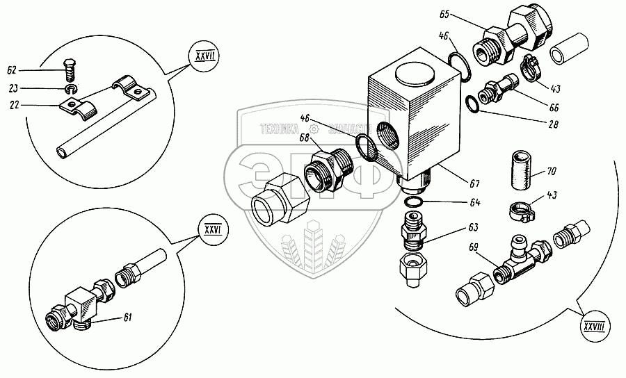 Каталог запасных частей к технике: Кранэкс МТП-71А. Элементы соединений гидравлики рабочего оборудования