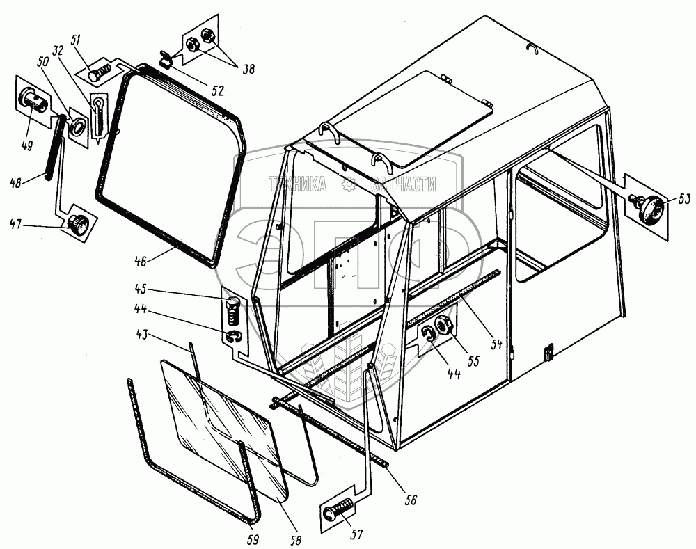 Каталог запасных частей к технике: Кранэкс МТП-71А. Кабина