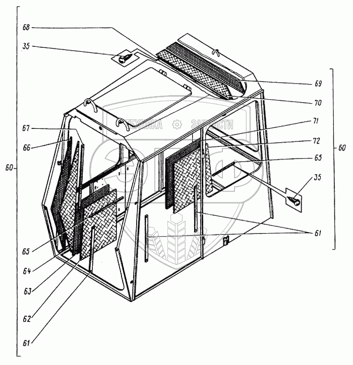Каталог запасных частей к технике: Кранэкс МТП-71А. Кабина