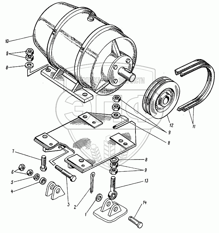 Каталог запасных частей к технике: Кранэкс МТП-71А. Установка генератора