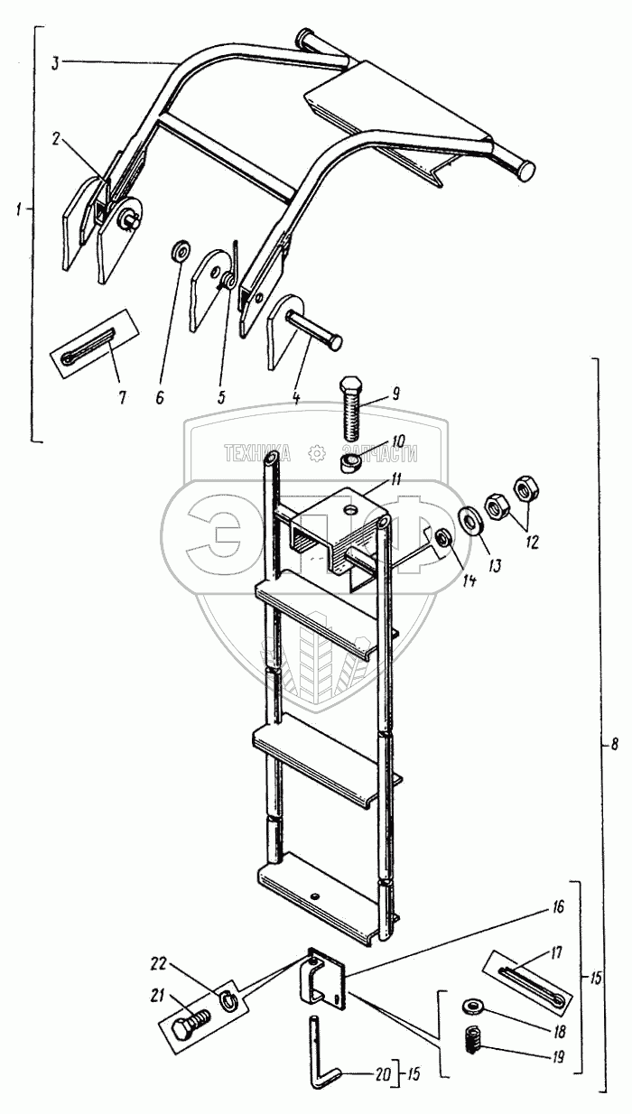 Каталог запасных частей к технике: Кранэкс МТП-71А. Установка лестницы