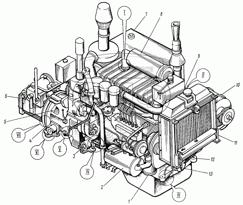 Каталог запасных частей к технике: Кранэкс МТП-71А. Установка силовая