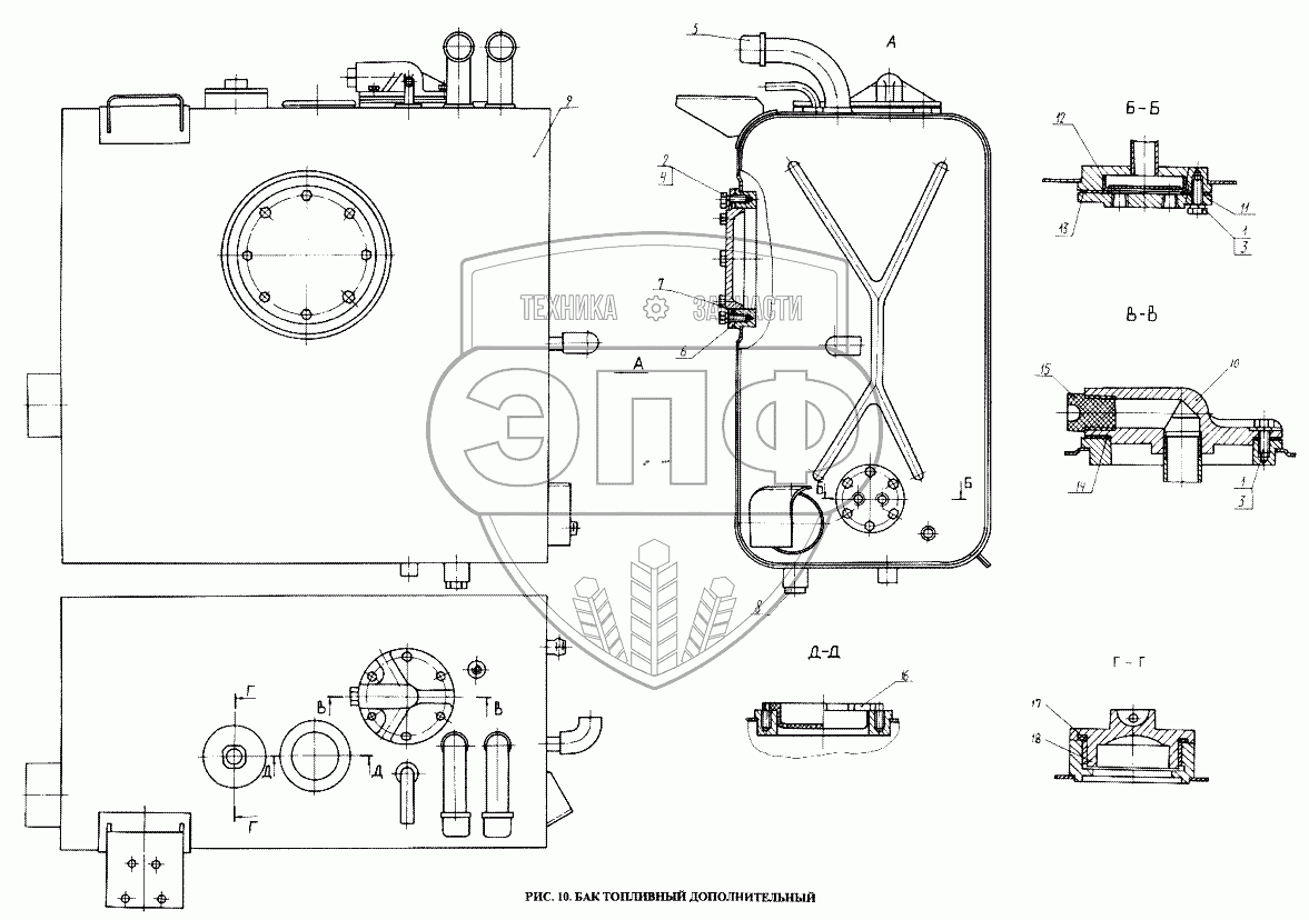 Каталог запасных частей к технике: КЗКТ-74281. Бак топливный дополнительный 7427-1102010