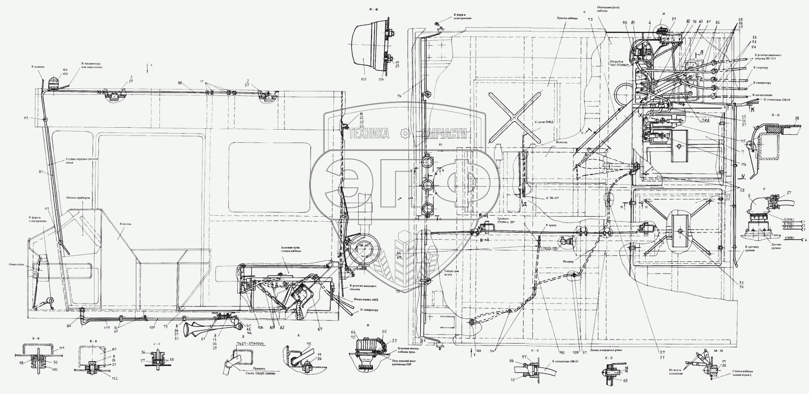 Каталог запасных частей к технике: КЗКТ-74281. Монтаж электрооборудования 7428-3700002-10