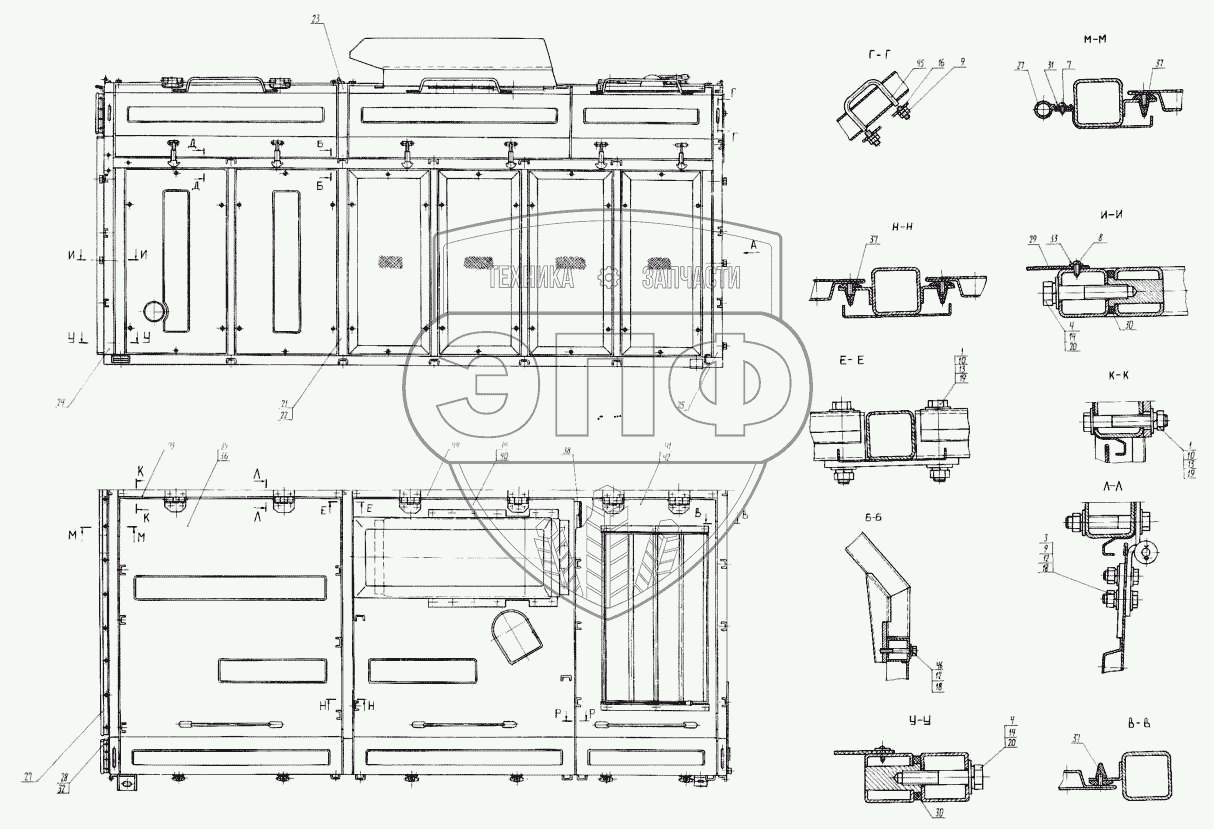 Каталог запасных частей к технике: КЗКТ-74281. Облицовка радиатора 7427-8401010-11