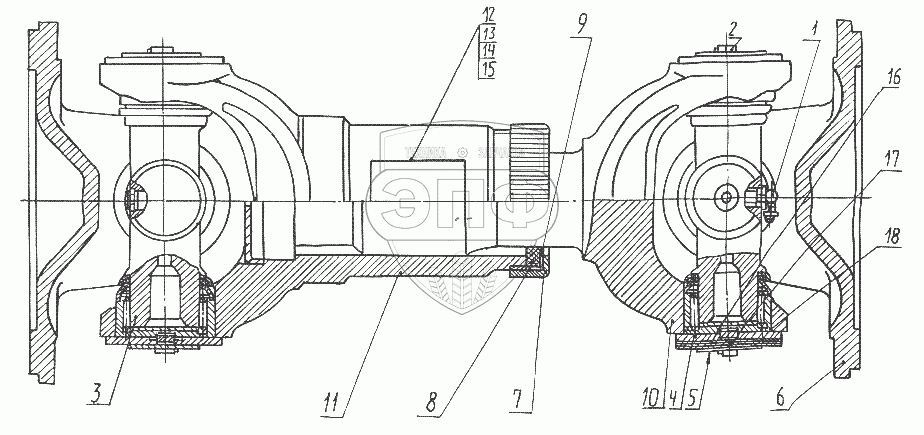 Каталог запасных частей к технике: КЗКТ-74281. Вал карданный промежуточный 7426-2202010