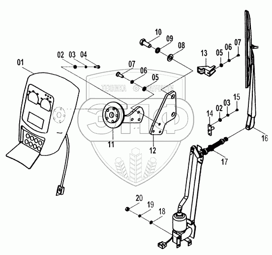 Каталог запасных частей к технике: LiuGong CLG-225. Стеклоочиститель, дисплей в сборе