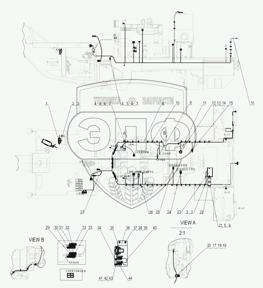 Каталог запасных частей к технике: LiuGong CLG-4215. 46С7457-000-00 REAR FRAME WIRING