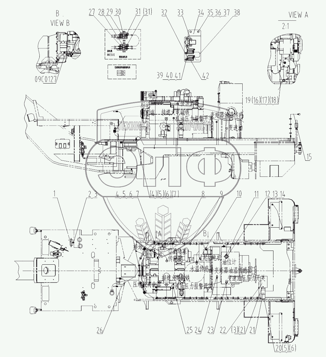 Каталог запасных частей к технике: LiuGong CLG-4215. 46С9005-000-00 REAR FRAME WIRING