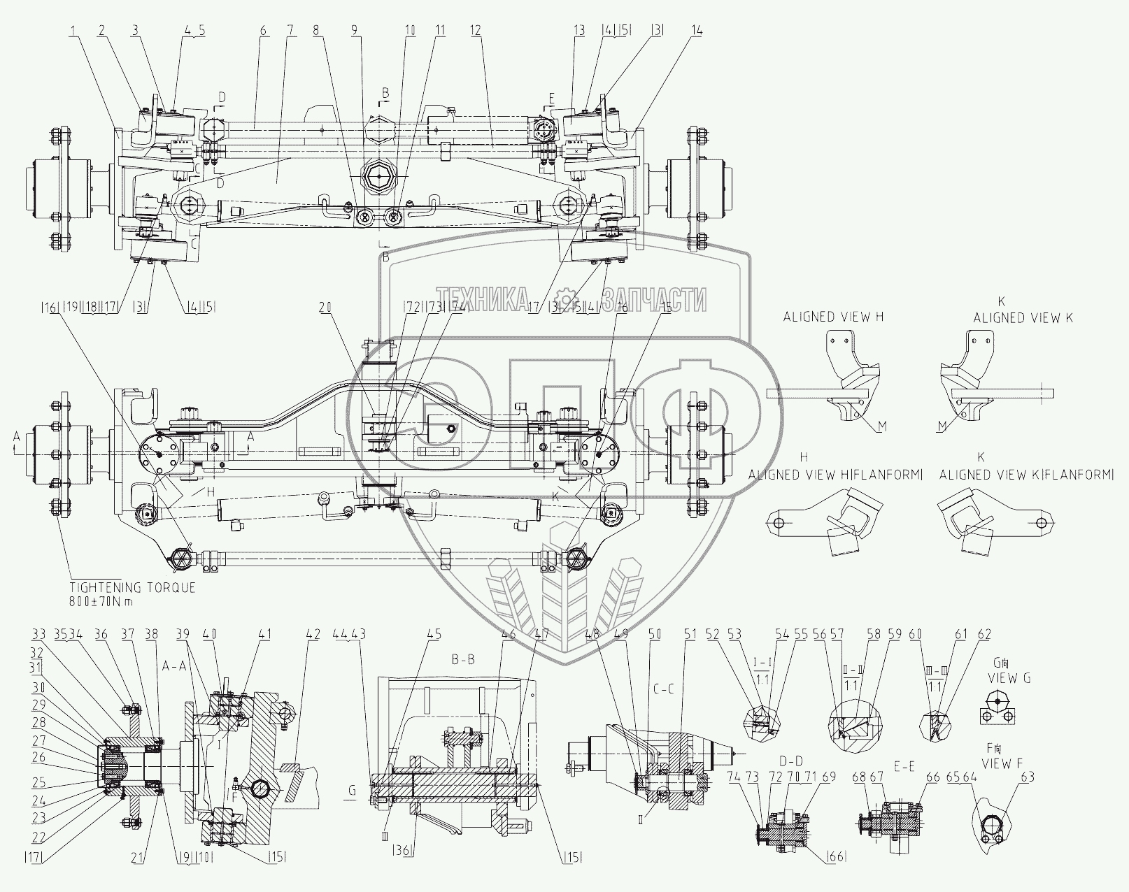 Каталог запасных частей к технике: LiuGong CLG 425. 26E0141 002 FRONT AXLE