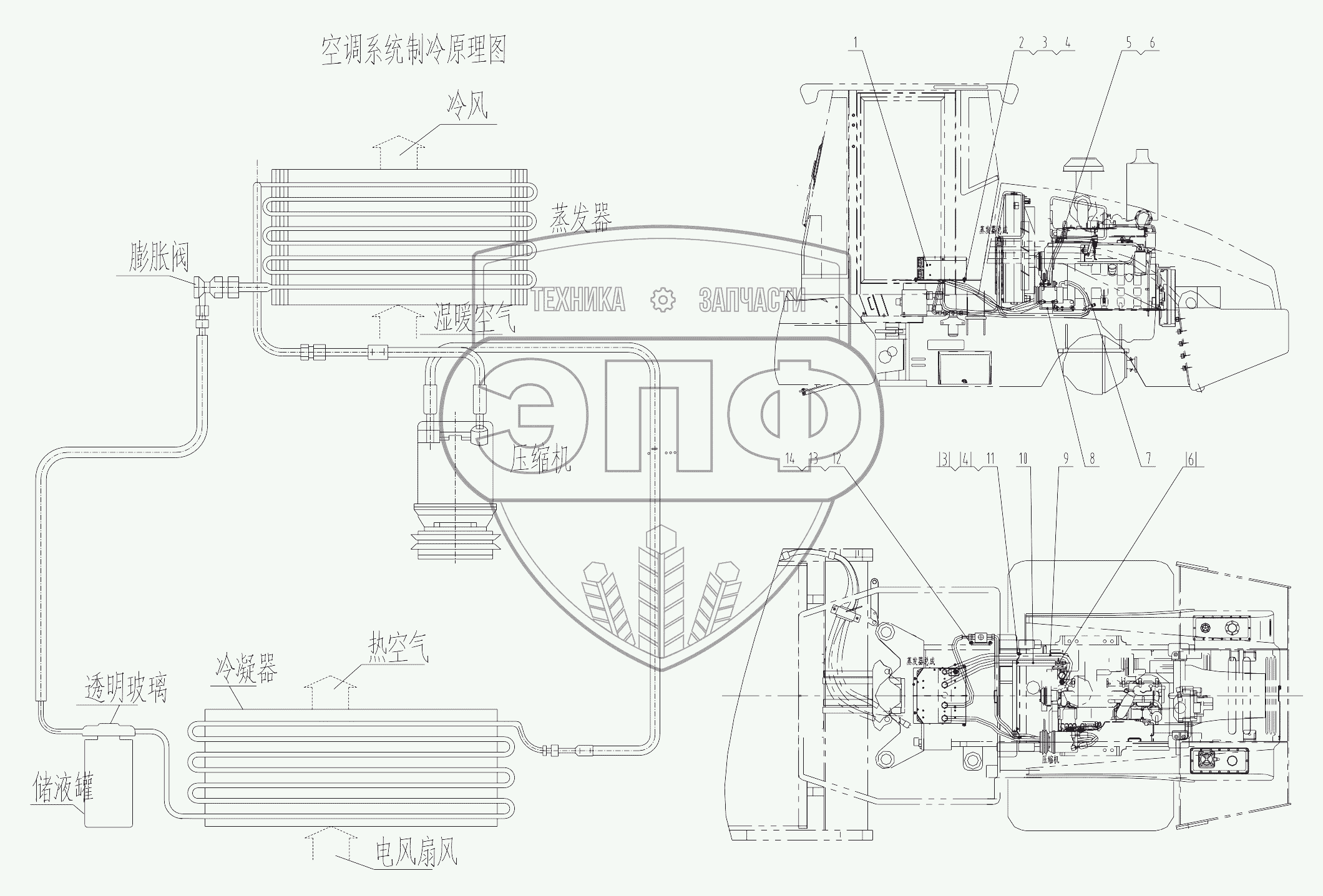 Каталог запасных частей к технике: LiuGong CLG-618. 02Y0011 Air Conditioner System