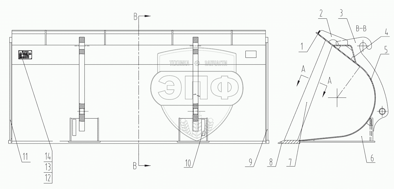 Каталог запасных частей к технике: LiuGong CLG-816G. 22D0556 002 BUCKET