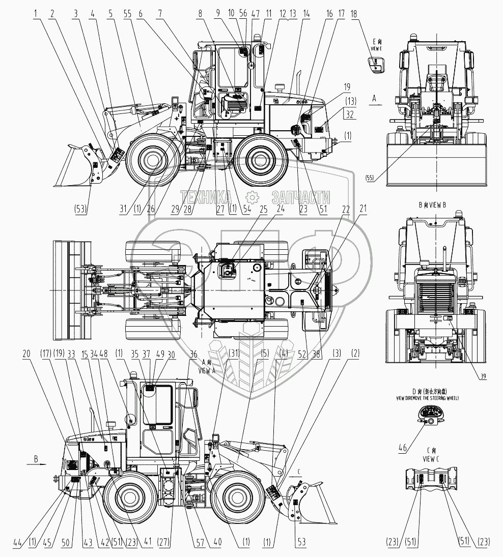 Каталог запасных частей к технике: LiuGong CLG-816G. 45E0532 004 DECAL GROUP