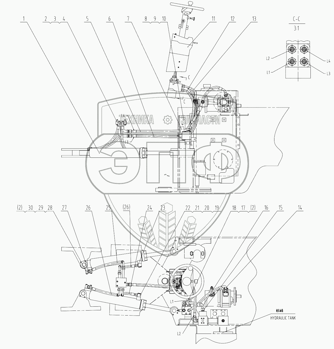 Каталог запасных частей к технике: LiuGong CLG-835. 00C2214 000 STEERING LINES