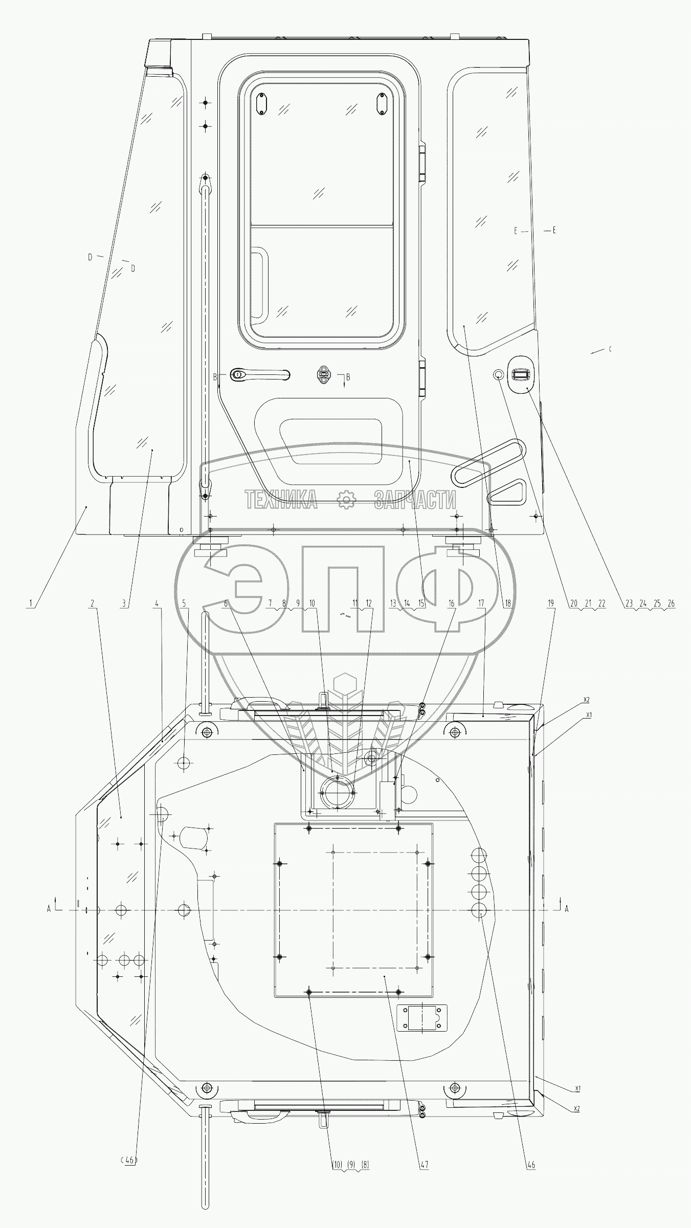 Каталог запасных частей к технике: LiuGong CLG-835. 41E0612 000 CAB AS