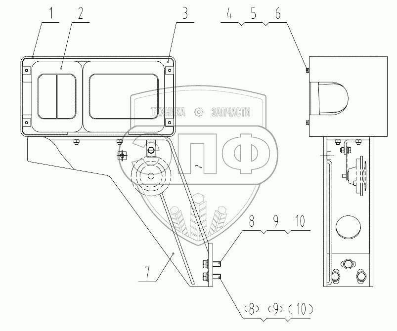 Каталог запасных частей к технике: LiuGong CLG-835. 46C4295 000 FRONT FLOODLIGHT-RH