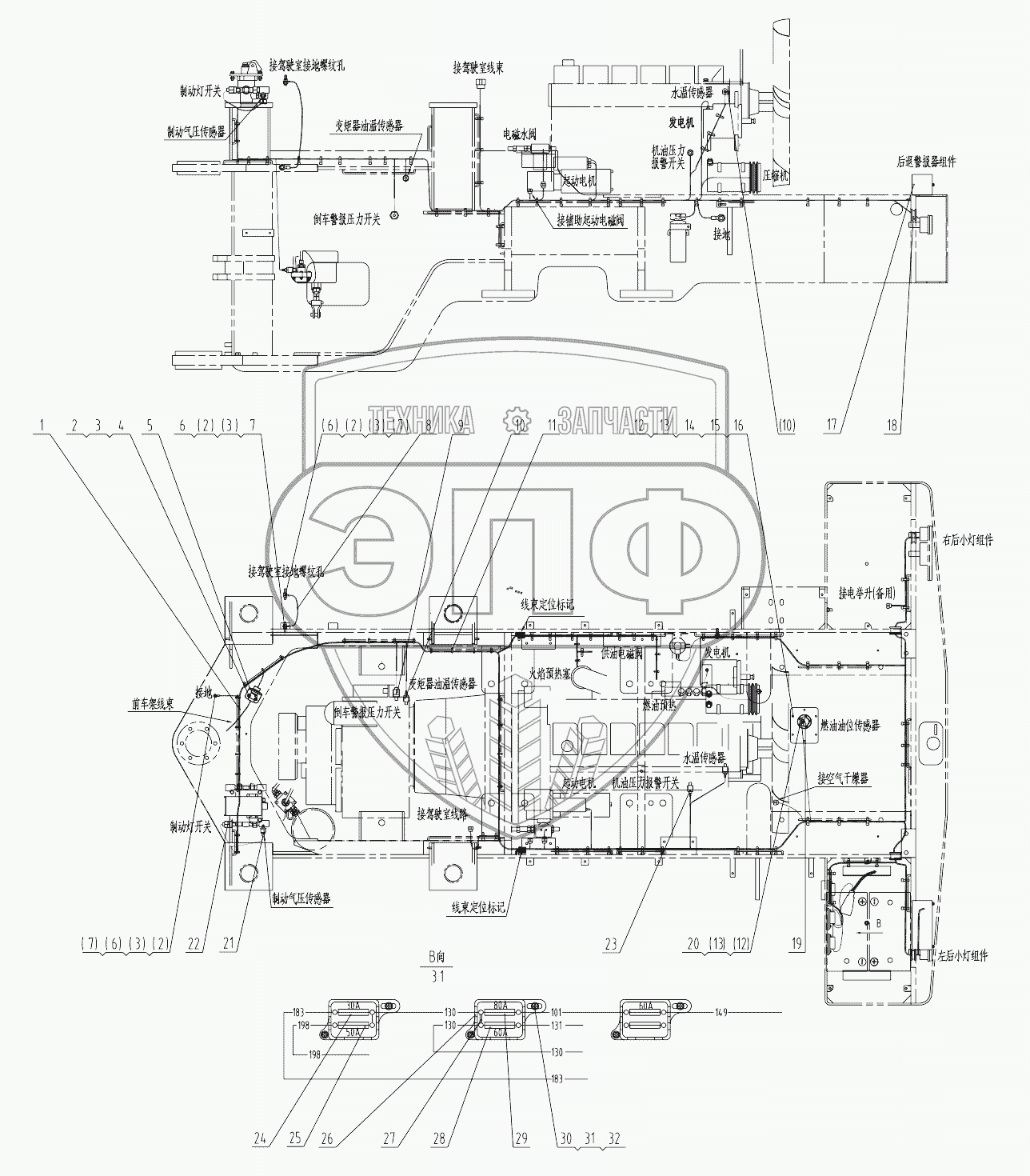 Каталог запасных частей к технике: LiuGong CLG-835. 46C8014 000 REAR FRAME WIRING