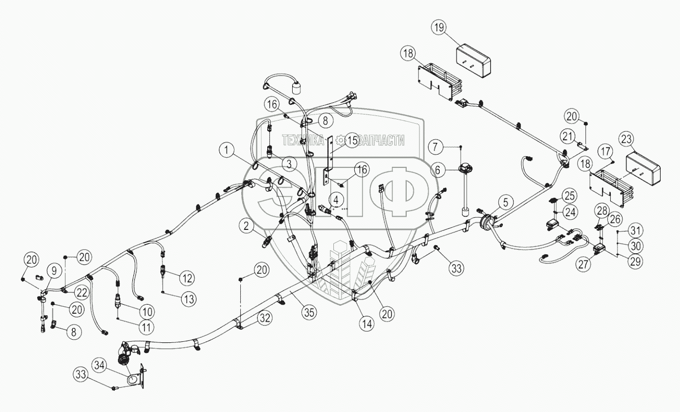 Каталог запасных частей к технике: LiuGong CLG-835H. 49C5543_000_00 REAR FRAME WIRING