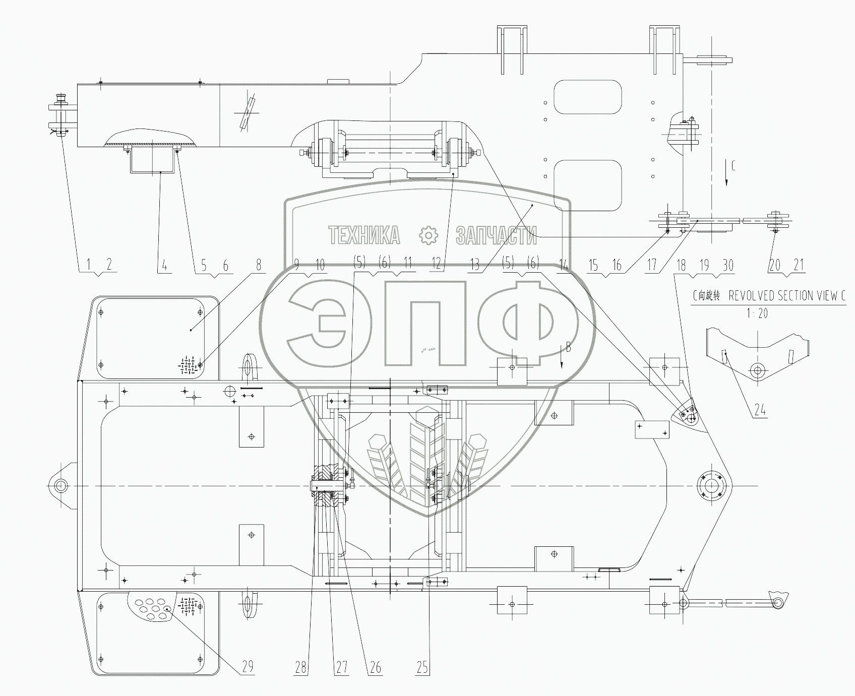 Каталог запасных частей к технике: LiuGong CLG-836. 30M0002 012 REAR FRAME AS